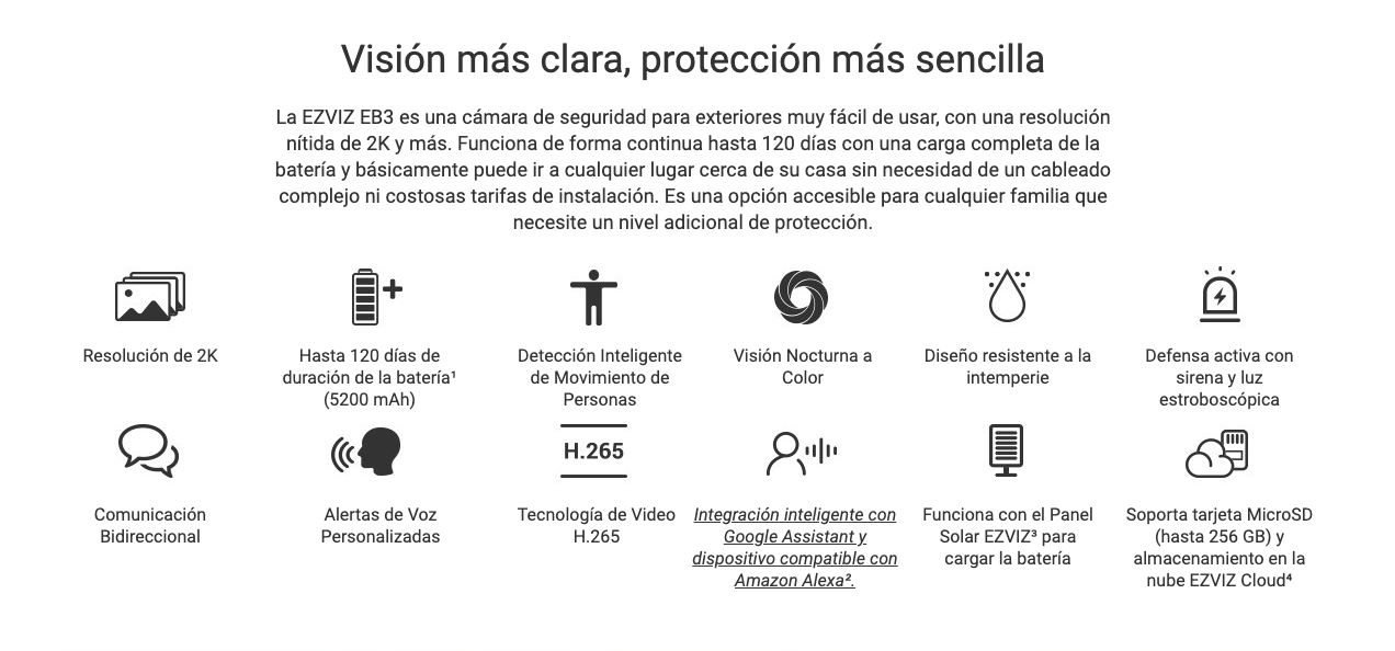 CAMARA DE SEGURIDAD WIFI EZVIZ EB3 2K, CON BATERÍA
