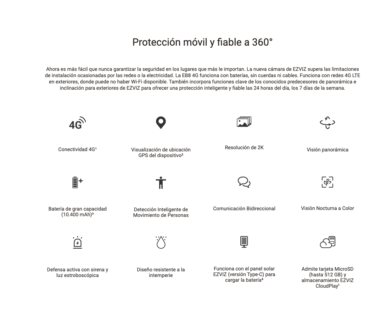 KIT CAMARA EZVIZ EB8 4G , 2K, BATERIA,+ PANEL SOLAR + AUDIO BID